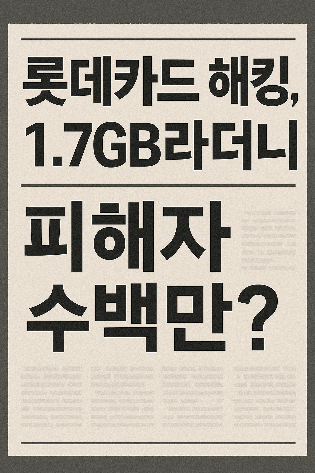 롯데카드 해킹 1.7GB라더니 피해자 수백만? 보상·대책 총정리📌 목차서론: 금융사 보안 사고, 왜 반복되나?본론 1: 롯데카드 해킹, 드러난 충격적 사실본론 2: 기존 사례와 비교 분석결론: 기대효과와 앞으로의 전망👉 피해 보상안 확인하기서론: 금융사 보안 사고, 왜 반복되나?최근 롯데카드 해킹 사고는 단순한 데이터 유출이 아니라, 금융사의 보안 투자 부실과 고객 보호 소홀을 여실히 보여주고 있습니다. 처음에는 단 1.7GB 데이터가 유출된 것으로 보고되었지만, 추가 조사 결과 피해 규모는 훨씬 심각하며 피해자가 수십만~수백만 명에 이를 수 있다는 관측까지 나오고 있습니다.이 사건은 단순 해킹을 넘어, 기업 지배구조·보안 시스템·소비자 보호 정책 전반을 점검해야 할 시그널이 되고 있습니다.본론 1:..
