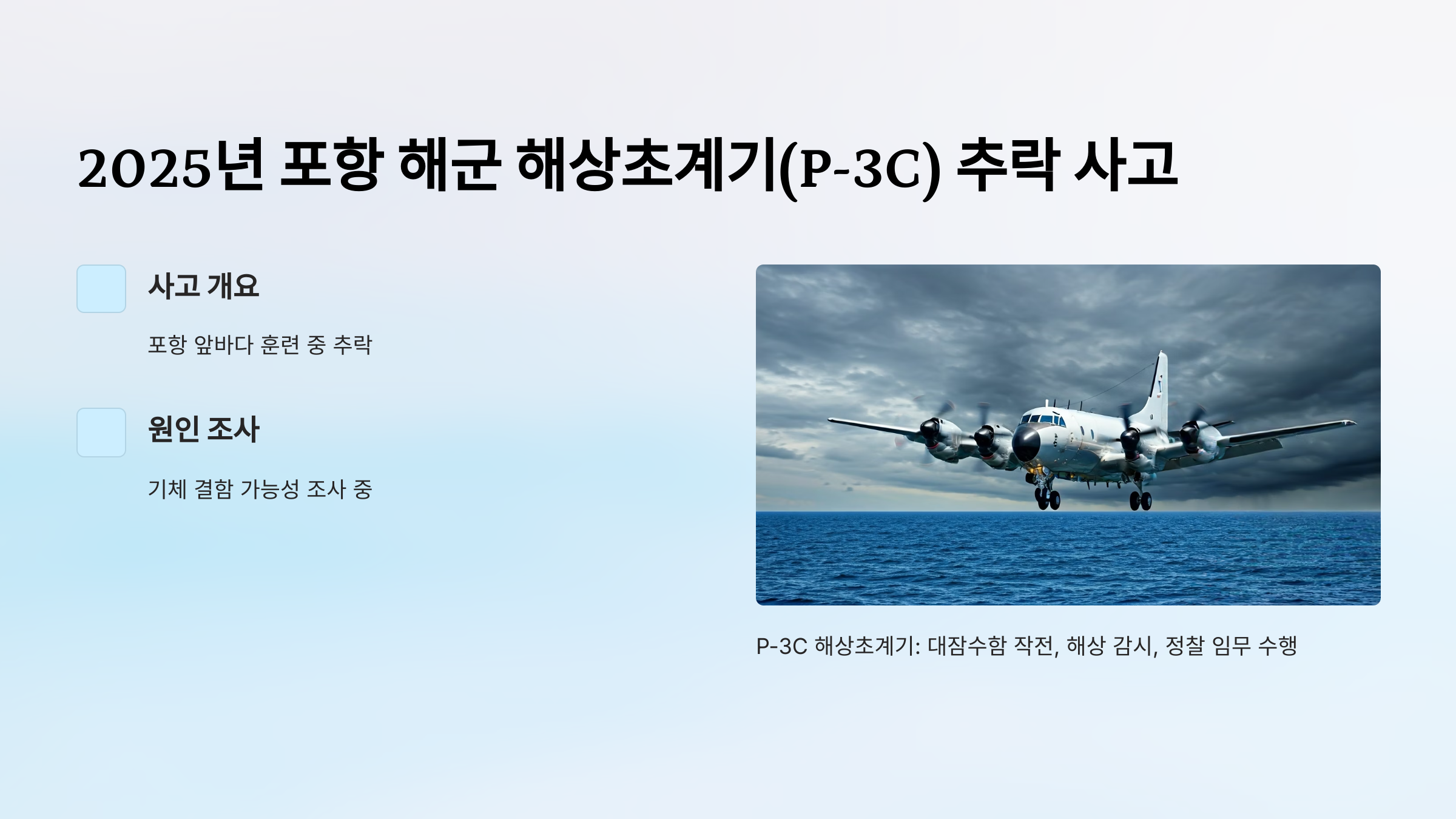 해군 해상초계기 P-3C Orion 추락의 원인과 현장 상황, 그리고 이 항공기가 국가안보에 갖는 의미까지 지금 한눈에 정리합니다.