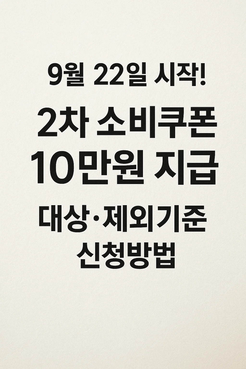 🔥 2025 민생회복 소비쿠폰 2차 10만원 추가 지급!9월 22일 시작! 소득 하위 90%에게 1인당 10만원 더 지급됩니다 🚨 현재 신청 진행 중! 2차 지급 신청 기간: 2025.09.22(월) ~ 10.31(금)🔍 빠른 바로가기:2차 지급 대상 신청 방법 사용처 확인📋 목차1. 2025 민생회복 소비쿠폰 전체 현황2. 2차 지급 대상과 제외 기준3. 지급 금액 총정리4. 신청 방법과 준비물5. 사용처와 주의사항6. 놓치면 안 되는 핵심 포인트💳 2025 민생회복 소비쿠폰 전체 현황2025년 정부는 총 13조 2천억 원 규모의 민생회복 소비쿠폰을 전 국민에게 지급하고 있습니다. 1차로 전국민에게 15만원~40만원을 우선 지급하고, 2차로 국민의 90%를 대상으로 10만원을 추가 지급하는 방..