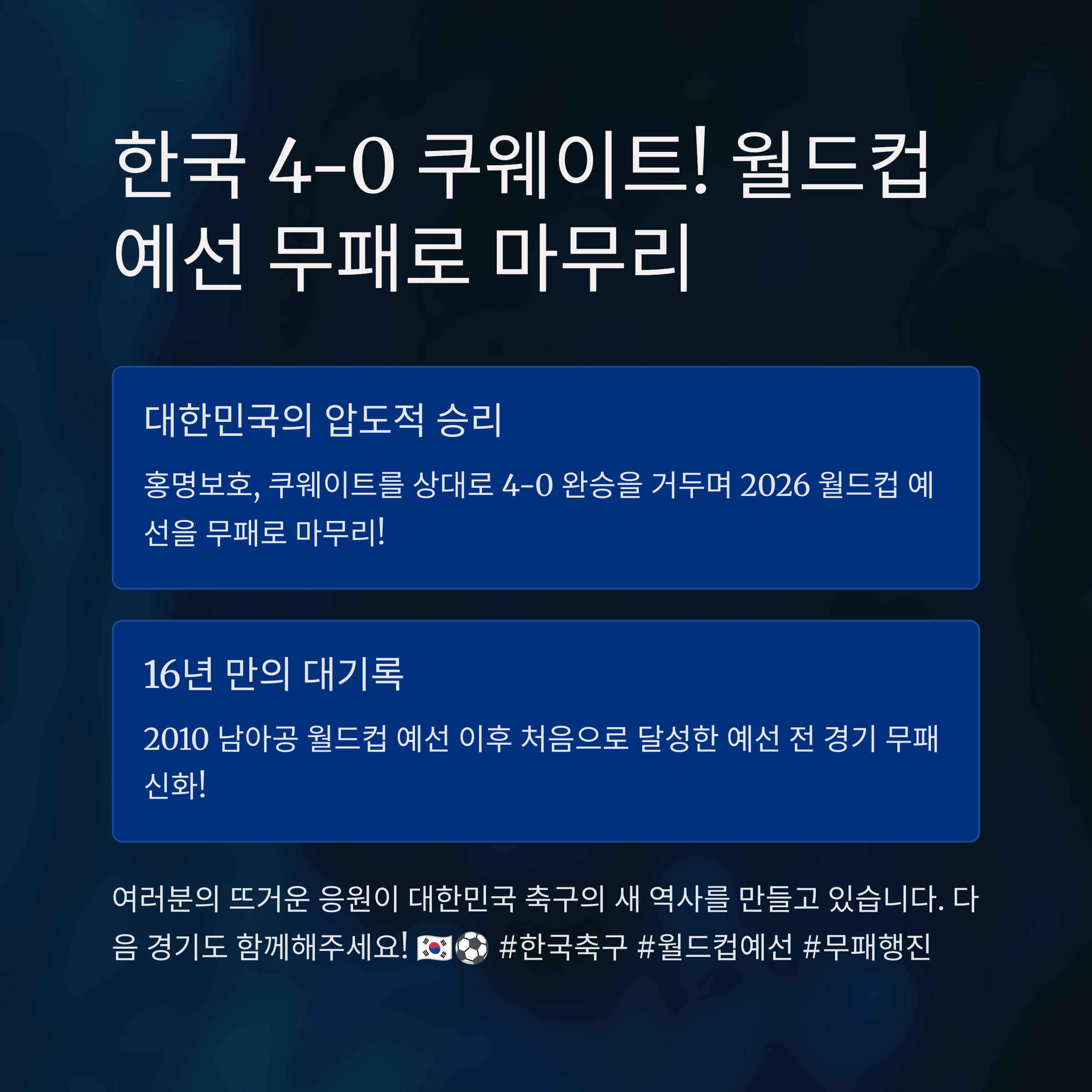 한국, 쿠웨이트 4-0 완파! 월드컵 예선 무패·본선행 확정 [2026 북중미]