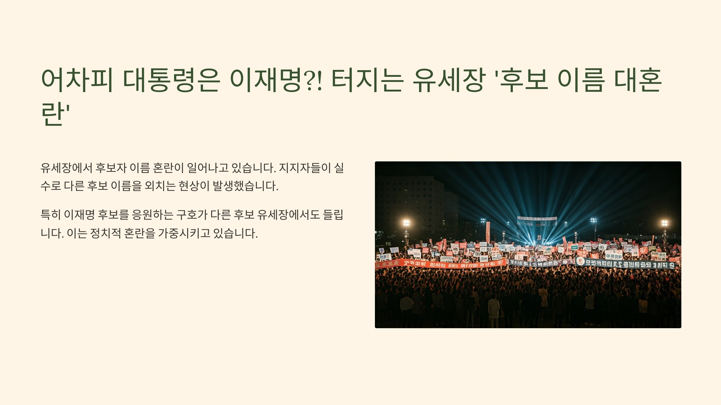 - 비판하려다 실수로 “이재명 찍으세요!” 연발